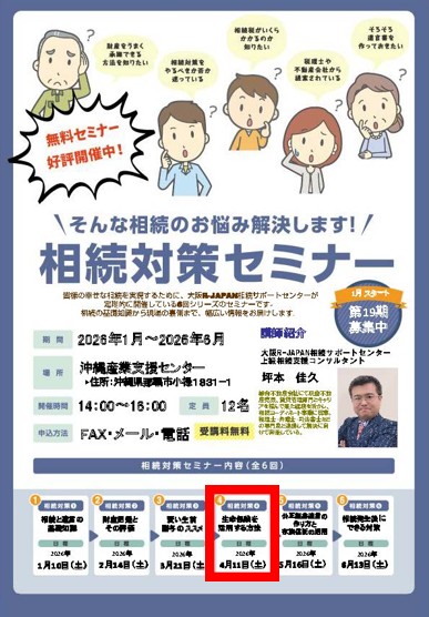 また、無料の相続セミナーも定期的に開催しており、将来の資産整理に関するご相談もサポートしています。